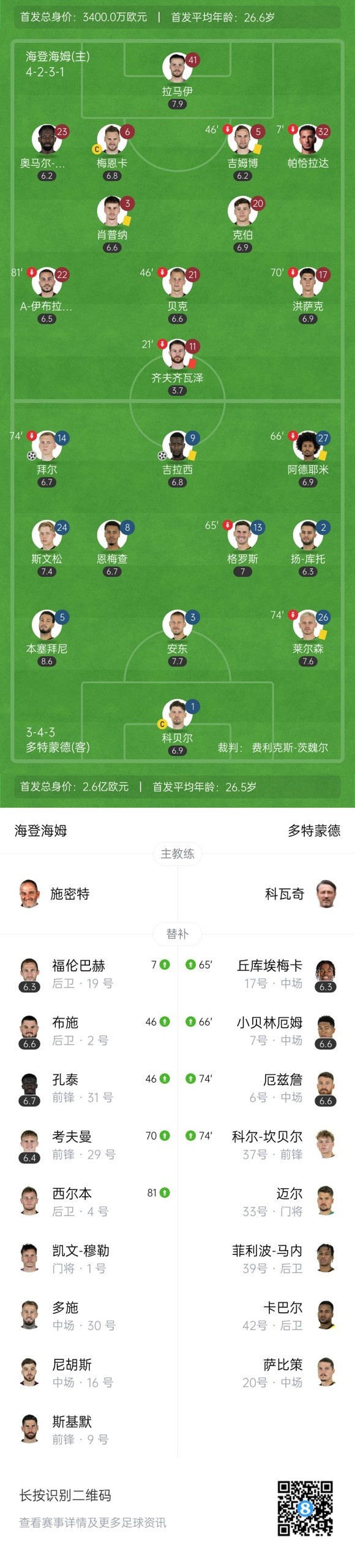 下半场补时3分钟,海登海姆0-2多特。