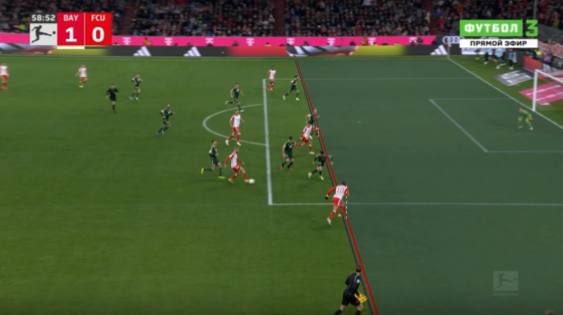 第46分钟,拜仁左路组织进攻,禁区内凯恩得球转身左脚射门击中弹出,格雷罗接到反弹球左脚外脚背射门得手,拜仁1-0柏林联合。↓