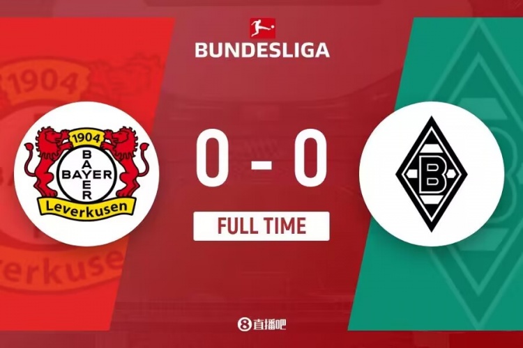 全场比赛结束,勒沃库森0-0门兴。