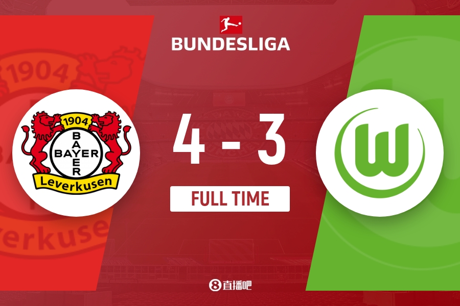 下半场补时7分钟,勒沃库森4-3沃尔夫斯堡。