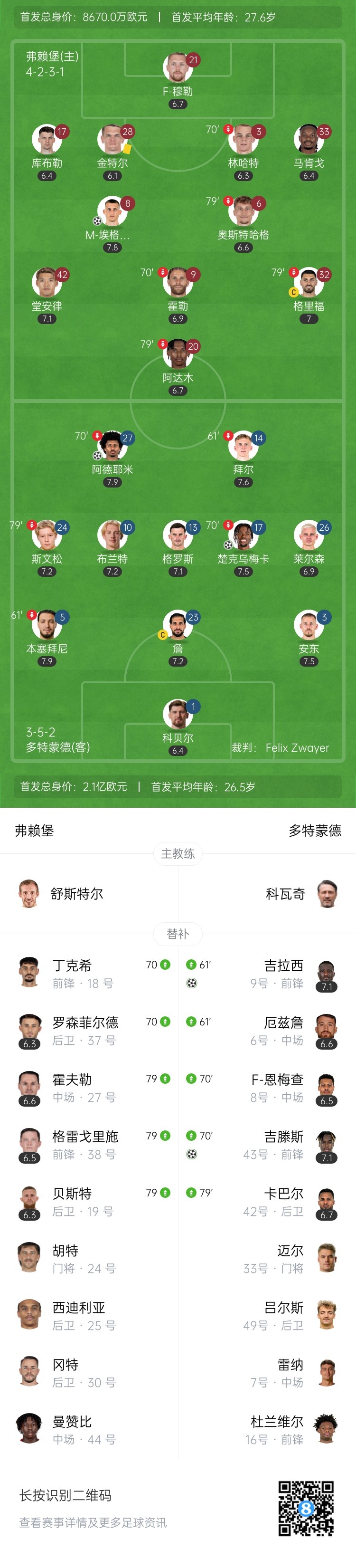 【双方首发及换人信息】