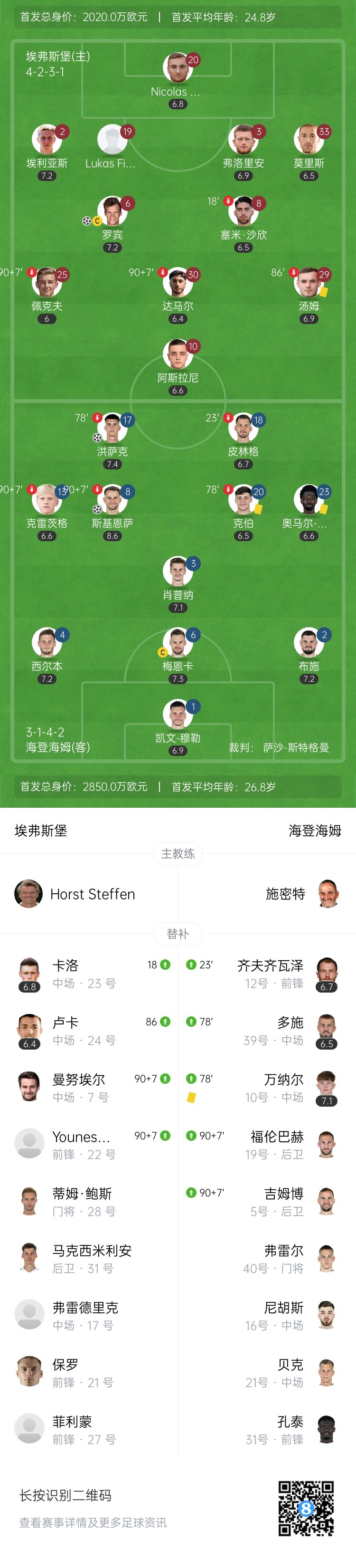第49分钟,阿斯拉尼破门帮助埃弗斯堡反超比分,但VAR介入后判定越位在先进球无效↓
