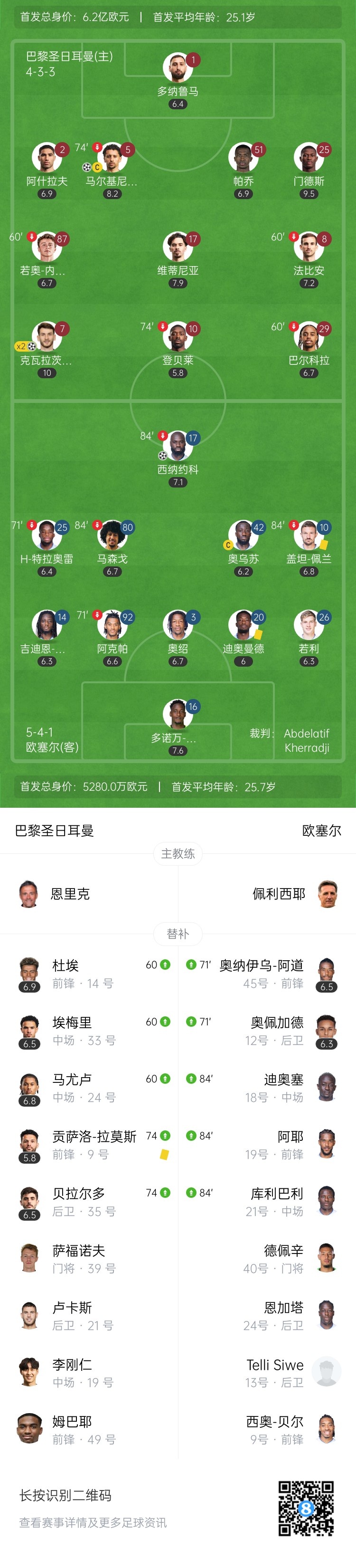 法甲收官-巴黎3-1逆转欧塞尔 克瓦拉茨赫利亚双响G-拉莫斯失点