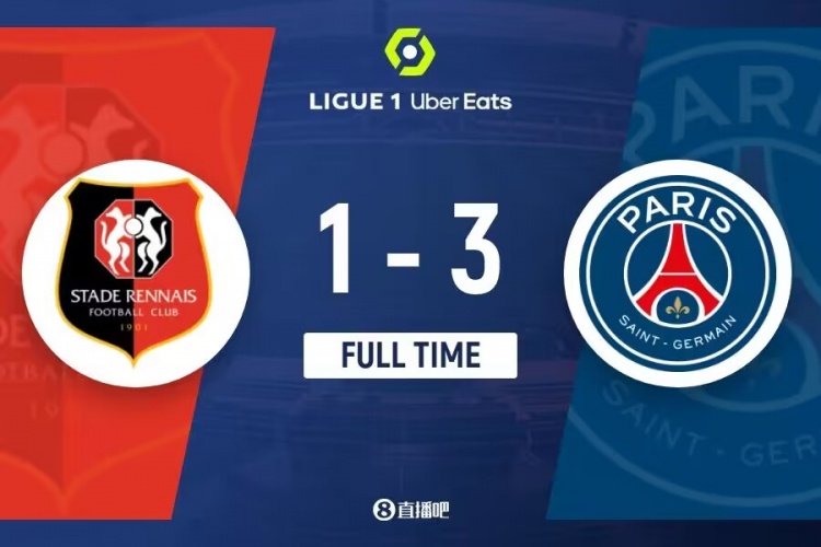 下半场补时5分钟。最终全场比赛结束,巴黎3-1客胜雷恩。