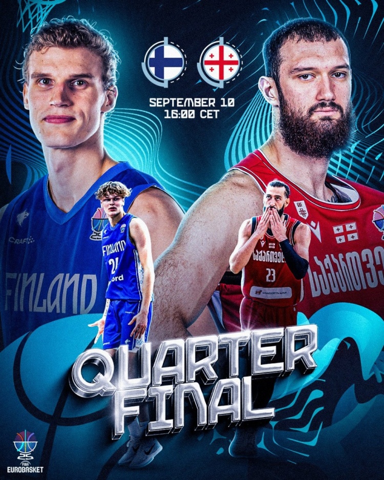 9月10日讯 男篮欧锦赛1/4决赛下半区开打,芬兰男篮和格鲁吉亚男篮迎来对决。两支球队在淘汰赛中双双完成爆冷,芬兰男篮击败了拥有约基奇的塞尔维亚队,格鲁吉亚则击败了上届欧锦赛亚军的法国队。
