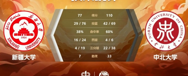 新疆大学:木合塔尔21分5板,艾则麦提江11分,马浩楠23分,江萨亚8分12板