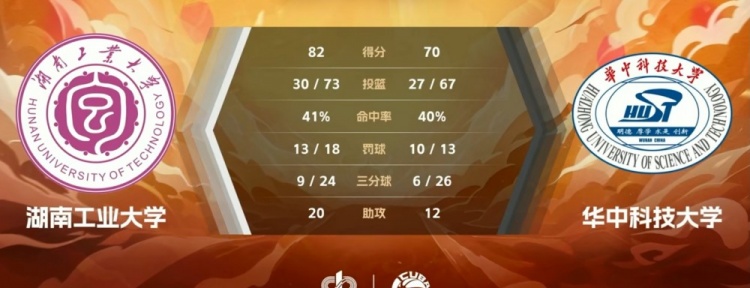 末节争夺,湖南工大奋力反击,熊嘉俊强攻得手一度将分差追到12分,祁宏升和柳锐相继飙中三分压制对手反扑势头,华中科大连投带罚作最后一搏,无奈之前分差太大。最终,湖南工大82-70力克华中科大。