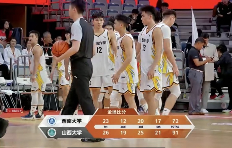 末节决战,孙威威上来再中三分,张潇再添2分帮助山西大学顺势拉开20分以上领先。打了近3分钟,董胤伯造杀伤终于止血,随后董胤伯三分命中但曹晋昌三分迅速回应,山西大学始终保持住20分左右领先,时间所剩无几,最终山西大学91-72轻取西南大学。