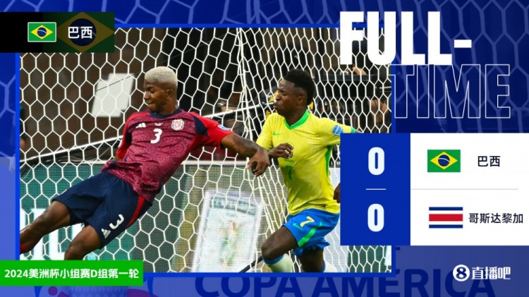 全场比赛结束,最终巴西0-0哥斯达黎加。