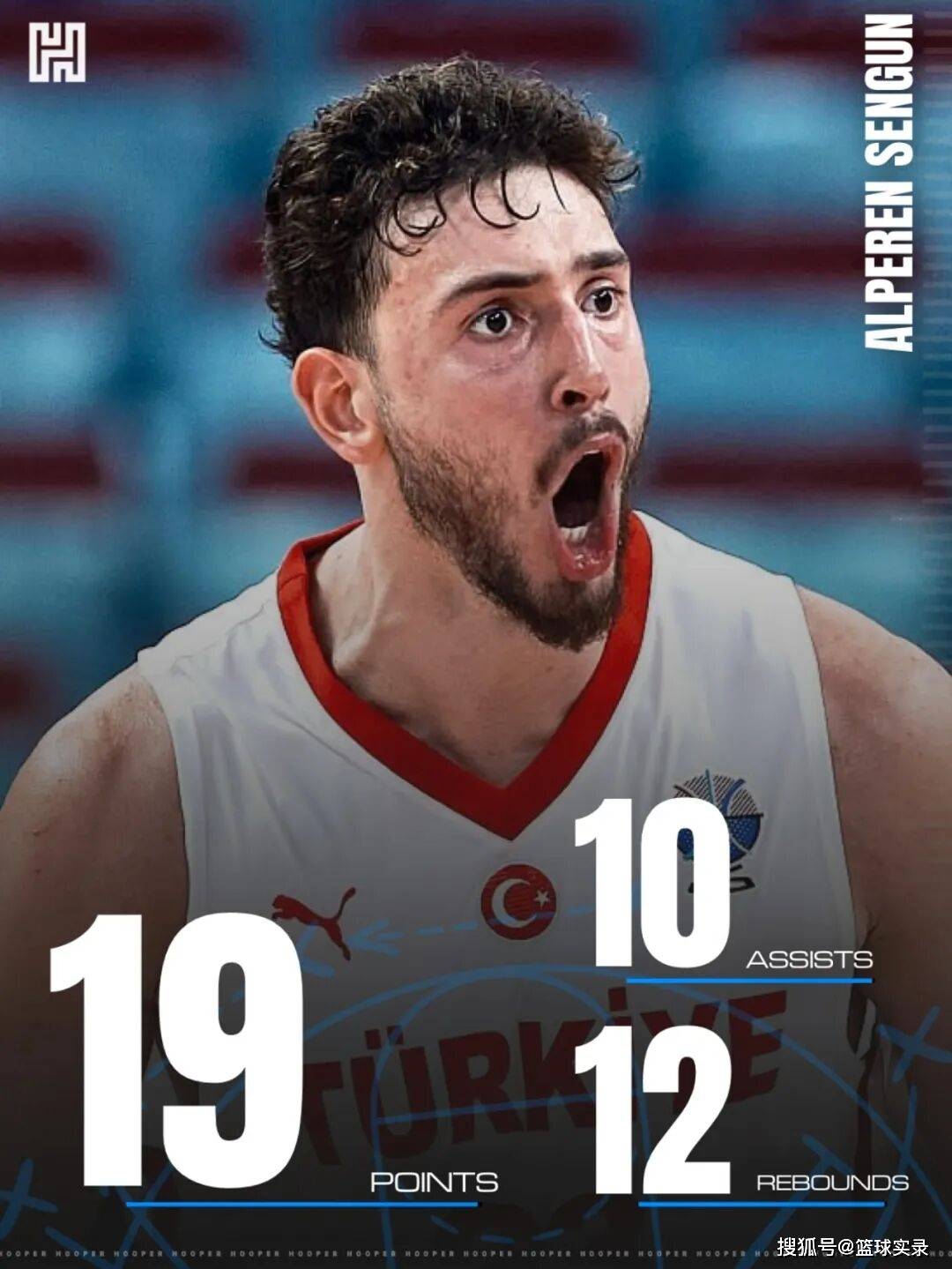 过程上,两队首节还是19-19打平,第二节土耳其打出一波27-13,成功拉开分差,此后土耳其一直紧握优势,下半场分差最小都没有小于过6分。