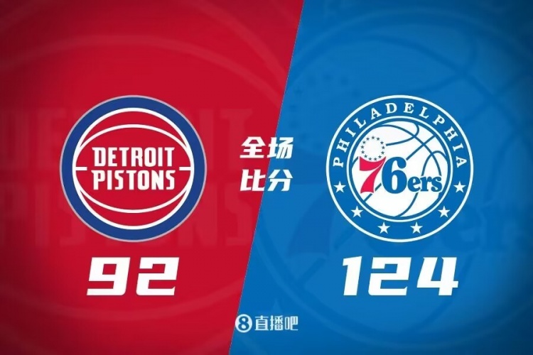 比赛开始,活塞进攻端还是不在状态,显得很懒散,马克西联手哈里斯接连帮助76人打出15-5开局,博扬接连中远投7-0终于止血,恩比德接连中投砍下8分助队首节领先4分,次节怀斯曼继续自己不错表现,但乌布雷联手小莫里斯能给出回应并重新拉开双位数领先,随后恩比德上场后又接连造杀伤取分,76人半场领先到20分以上。下半场,恩比德还是不可阻挡,76人进攻端越打越好直接拉开30分以上分差,末节双方都换上替补阵容练兵,但76人还在拉大分差,最终76人124-92大胜活塞,拿到5连胜的同时送活塞22连败。