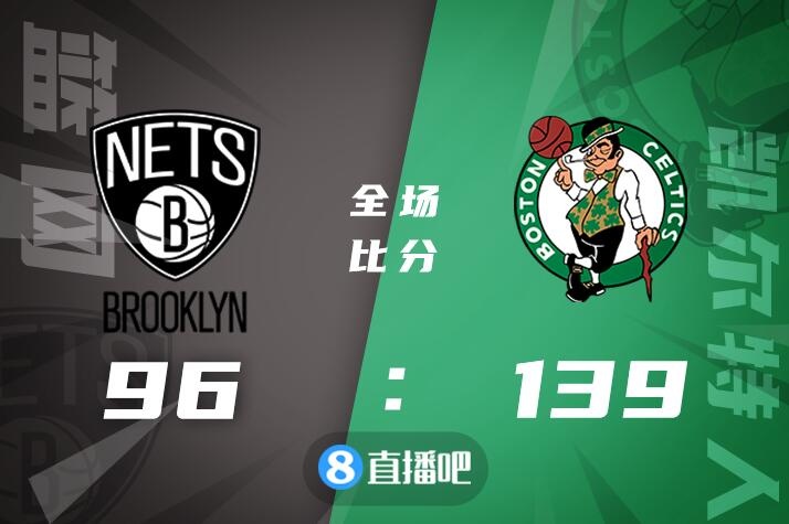 本以为是强强对话又是全美直播的比赛会精彩纷呈,但比赛开始后直接呈现一边倒的局势,篮网众将进攻端丝毫不在状态,而双探花则是联手发力,凯尔特人外线也是万箭齐发,首节便打出46-16的悬殊比分一举确定30分以上的优势,随后欧文手感回暖帮助篮网追分,但无奈双探花保持住火热状态半场砍下38分,怀特和罗威也都有得分贡献,凯尔特人保持着30分以上的领先优势,随后双方早早换上替补练兵,凯尔特人又将分差一度拉开近50分,最终凯尔特人139-96大胜篮网。