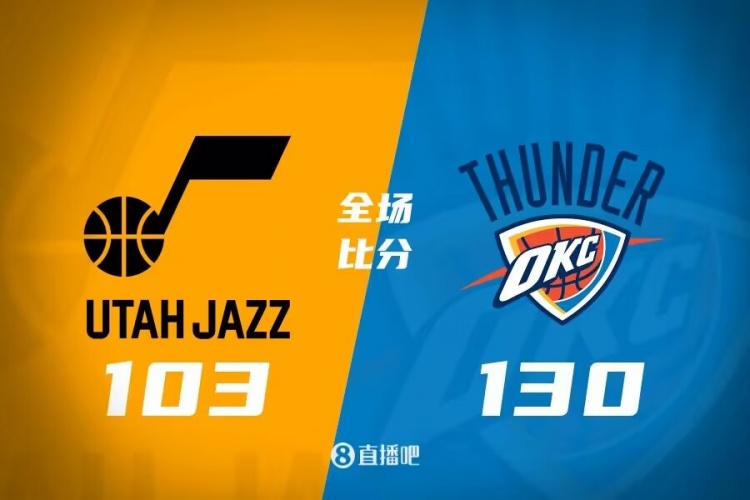 比赛开始,雷霆利用主场优势率先发力,内外开花很快取得两位数领先,爵士逐渐找到状态,强攻内线频频得手完成反超,雷霆持续发力打出15-1的攻击波重获两位数优势,半场战罢雷霆67-52领先。下半场,双方火力全开大打对攻,但雷霆始终保持两位数的优势,末节爵士命中率骤降,雷霆将分差拉开到20分以上杀死比赛。最终,雷霆130-103大胜爵士,结束5连败。