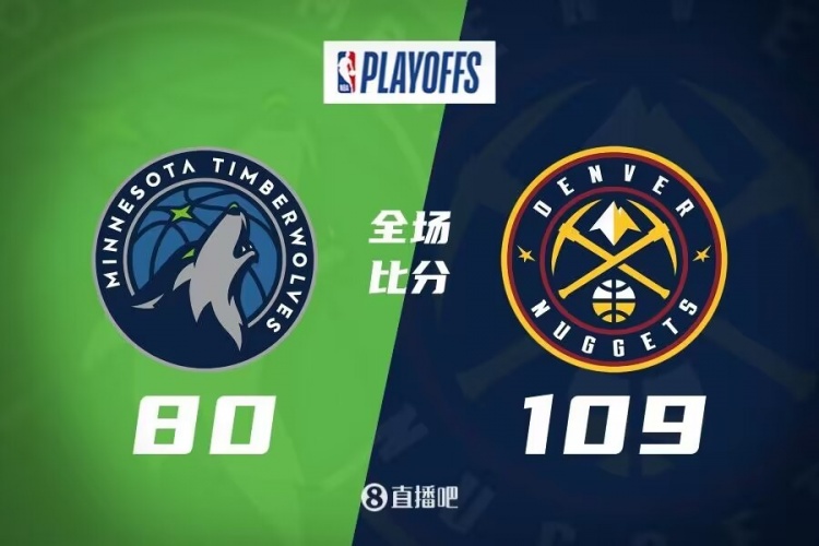 此役一上来掘金火力全开,戈登和小波特内外结合打出8-0小高潮,爱德华兹联手安德森及时回应,约基奇得分组织一把抓率队保持优势,首节结束时掘金领先3分,次节回来,双方进攻均陷入停滞,爱德华兹及时复苏率队追分,布鲁斯-布朗里突外投强势回应,末段森林狼进攻再度断电,掘金一波8-2拉开比分,半场战罢,掘金确立11分优势。下半场回来,森林狼进攻彻底停滞,单节仅得到14分,掘金延续火力不断拉开比分,三节结束后掘金已经领先29分,末节上来,森林狼率先换上替补一度缩小分差,但掘金及时发力终结悬念,最终掘金109-80轻取对手,大比分1-0领先。