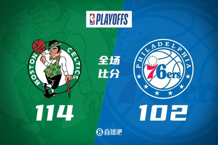 比赛开始76人非常慢热,凯尔特人外线多点开花轰出14-4的梦幻开局,随后恩比德接连内线强打加造杀伤帮助76人一波11-0直接反超比分,双方展开拉锯战,恩比德回到更衣室惊出众人一身冷汗,哈登手感还是不佳,凯尔特人始终保持两球以上领先。下半场,还是恩比德内线连续造杀伤单节得分上双撑起球队进攻,而凯尔特人首发五人已全部上双,三节结束凯尔特人领先到11分,末节哈登还是没有手感,好在替补尼昂站出来帮助追分,恩比德不慎踩到格威,后者嘴部出血,霍福德突施冷箭给出回应稳住局势,凯尔特人牢牢保持住领先,最终凯尔特人114-102力克76人。