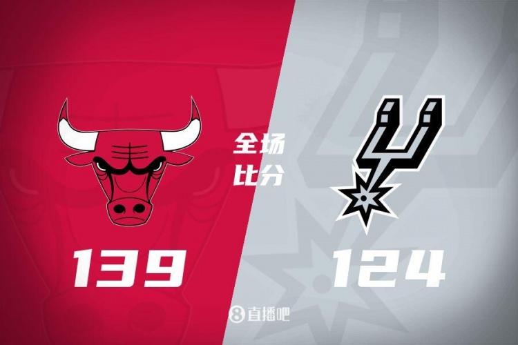 比赛开始,没有文班亚马的马刺队攻防两端都受阻,道苏姆有攻有传单节得分上双,公牛多点开花迅速建立领先并在首节领先到14分,次节双方展开对攻战,场上节奏很快,公牛继续全面开花一度领先到近20分,马刺也是全民皆兵追分,半场公牛还领先16分。下半场,双方还是对攻大战,保罗开始串联球队送出6助攻,马刺替补也开始发挥追分,但武切维奇单节得分上双强势回应,三节公牛还领先11分,末节马刺接连造杀伤追至个位数分差,但公牛接连攻击内线迅速回应10-2稳住局势,公牛牢牢掌握住十几分领先,最终公牛139-124力克马刺。