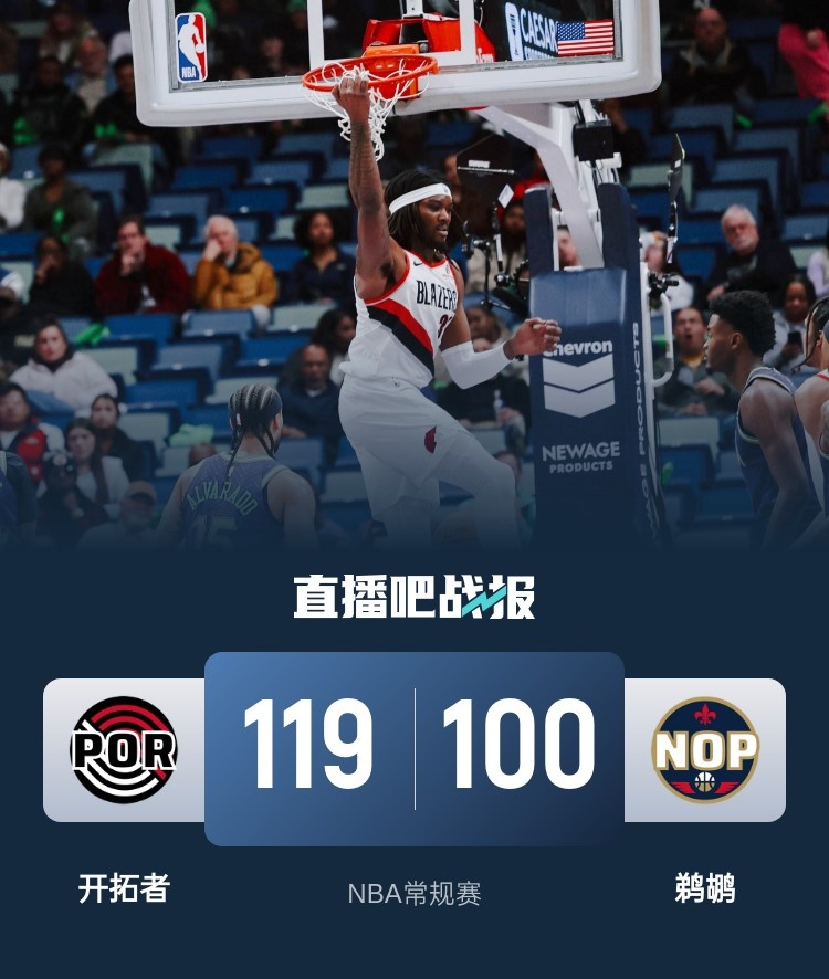 🏀阿夫迪亚26+6 夏普21分 锡安休战 开拓者轻取鹈鹕