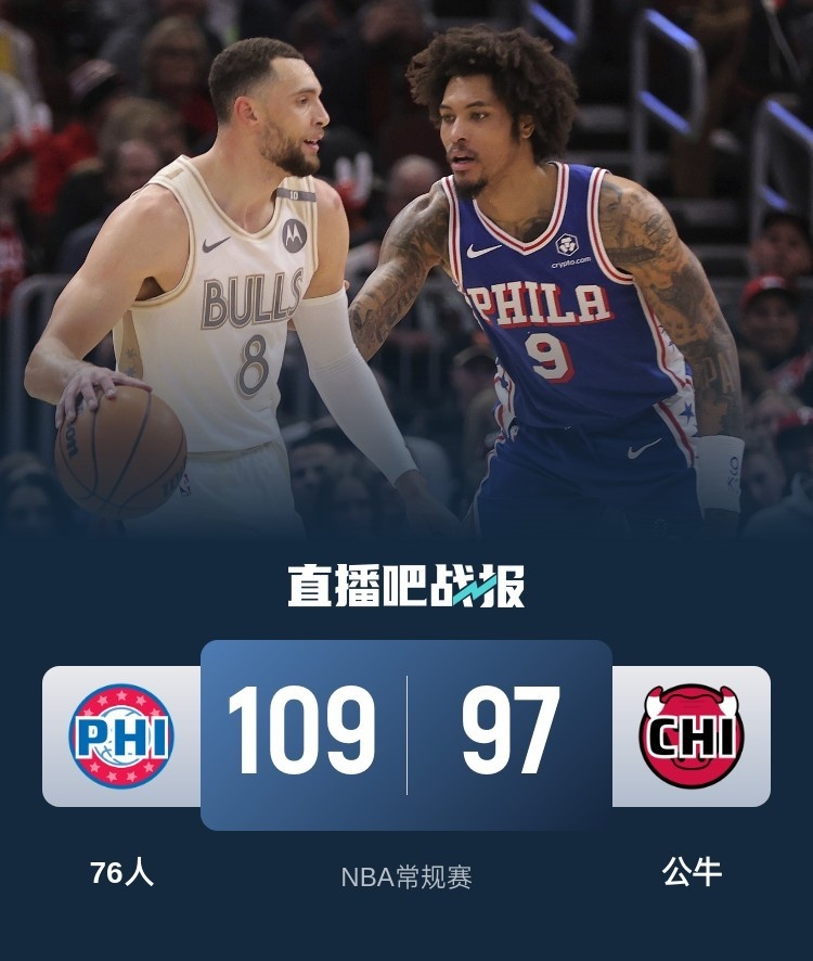 🏀马克西31+5+9 乌布雷22+12 乔治伤退 76人逆转胜公牛