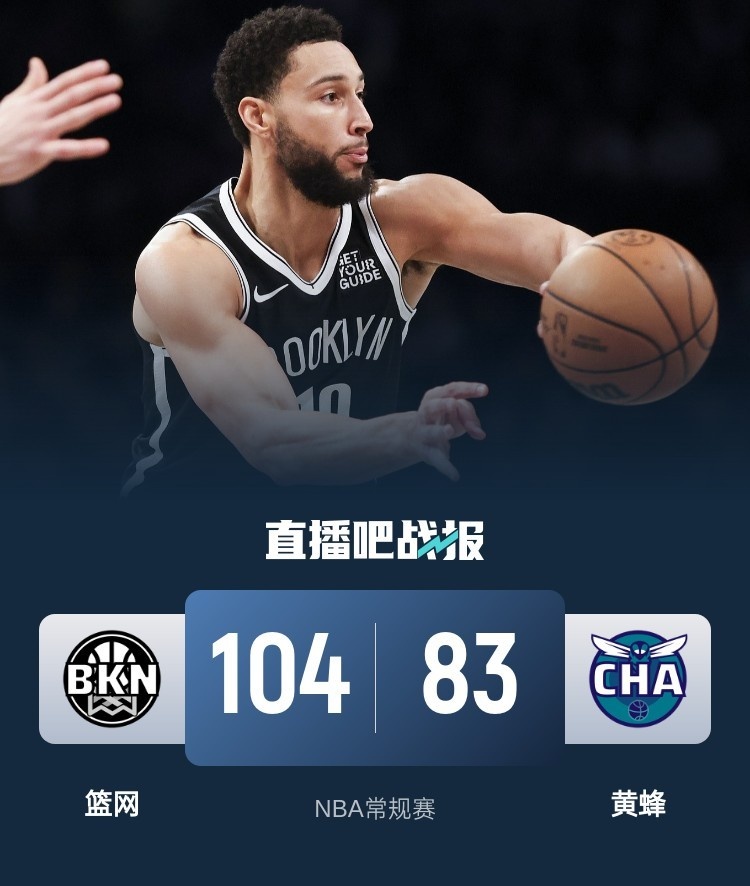 🏀约翰逊18+5 本西复出10+6 布里奇斯23+13 篮网胜黄蜂止7连败