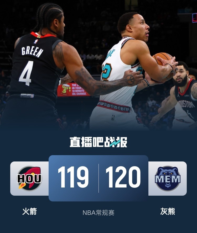 🏀范乔丹错失绝杀 JJJ关键罚球 格林25分 灰熊拒绝横扫险胜火箭
