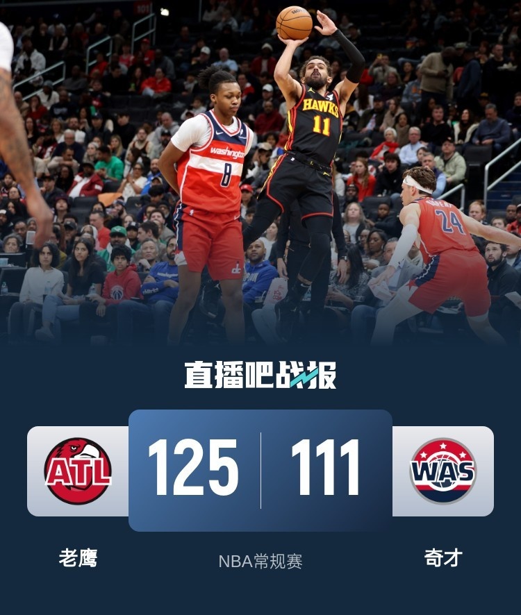 🏀特雷-杨35+14 里萨谢18分 普尔21+6 老鹰力克奇才