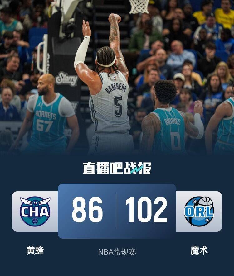 🏀班凯罗24+8+6 小瓦格纳16+7 布里奇斯19+8 魔术赛季三杀黄蜂