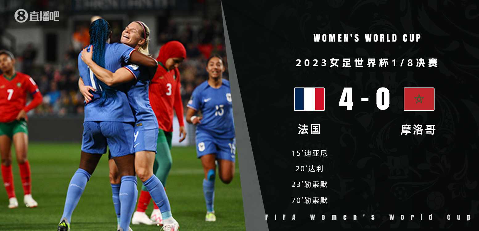 女足世界杯-法国女足4-0轻取摩洛哥女足 1/4决赛对阵澳大利亚女足