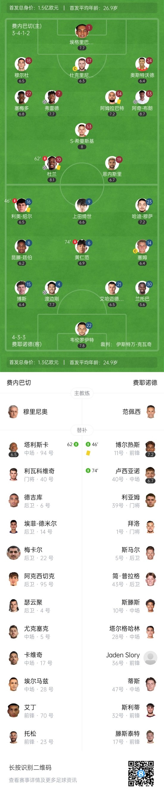 上半场补时3分钟,费内巴切2-1费耶诺德。
