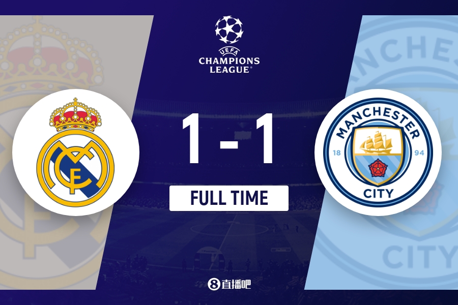 下半场补时3分钟。最终全场比赛结束,皇马主场1-1曼城。