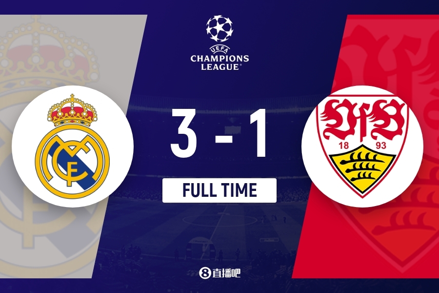 下半场补时5分钟。最终全场比赛结束,皇马3-1斯图加特。