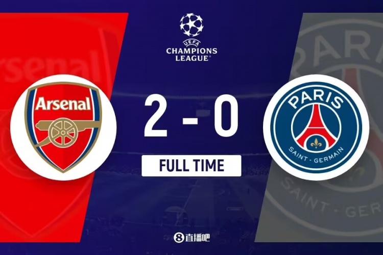 下半场伤停补时4分钟,全场比赛结束,最终阿森纳2-0巴黎圣日耳曼。