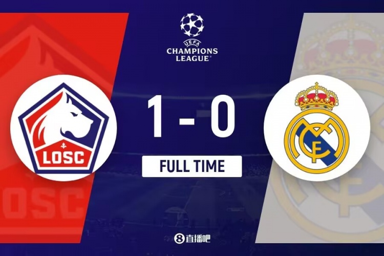 下半场补时5分钟。最终全场比赛结束,里尔1-0皇马。