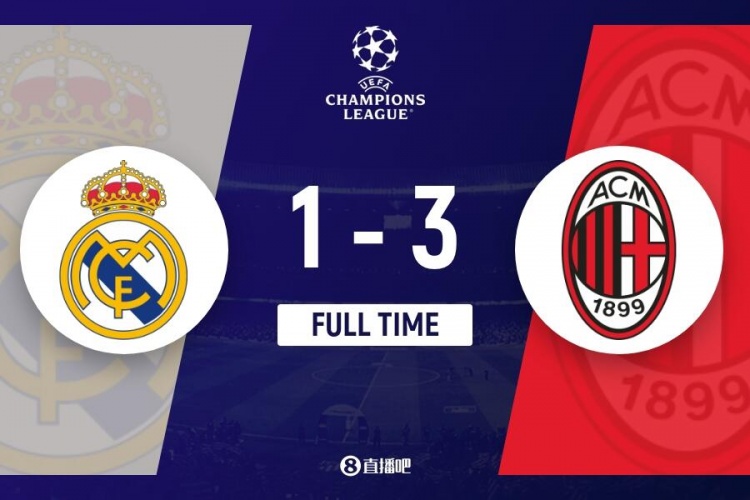全场比赛结束,皇家马德里主场1-3不敌AC米兰。