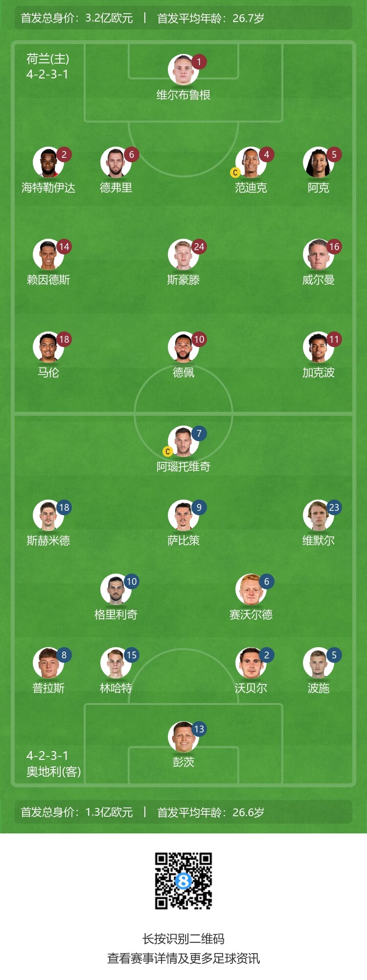 荷兰首发及换人: