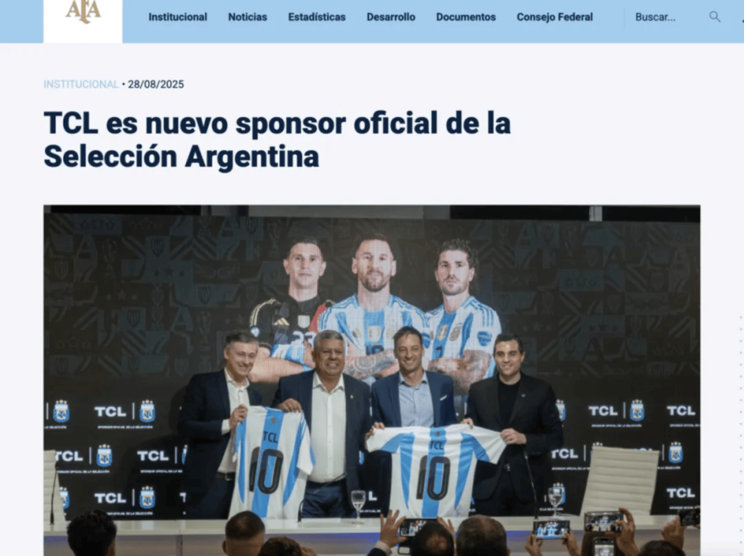 次日,TCL官宣成为阿根廷国家队官方赞助商。在世界杯年即将到来之际,已经是国际奥委会TOP合作伙伴的TCL,继续加码体育营销。