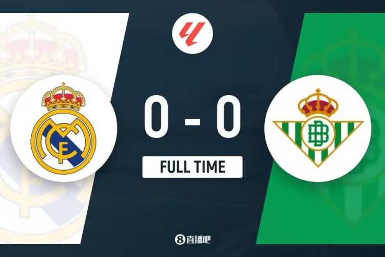 下半场伤停补时3分钟,全场比赛结束,最终皇马0-0贝蒂斯。