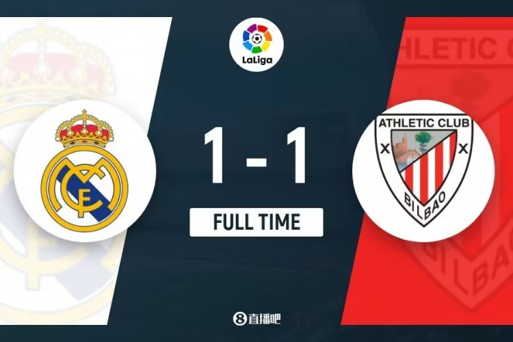 伤停补时4分钟。全场比赛结束,皇马1-1毕尔巴鄂。