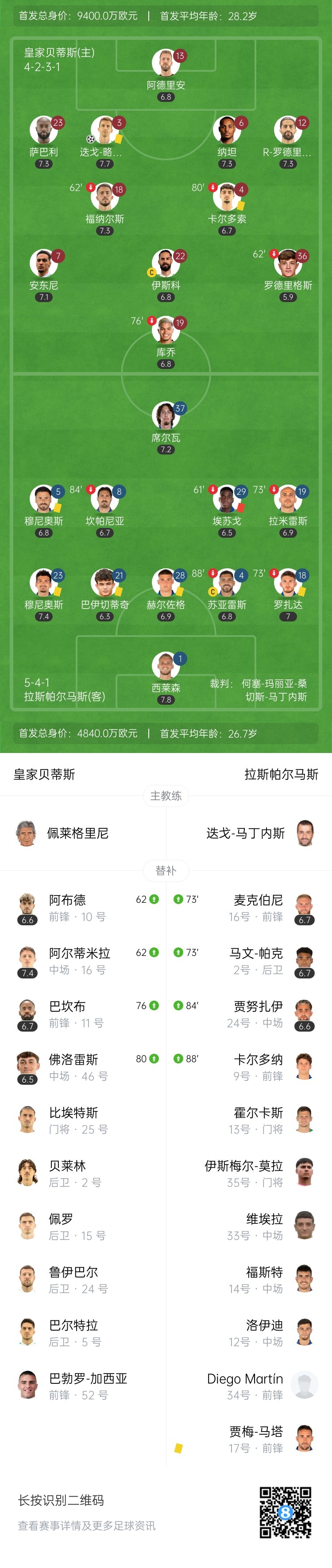 第68分钟,贝蒂斯角球被解围出来,求打到裁判,哨响,R-罗德里格斯一脚远射破门!但是不算↓
