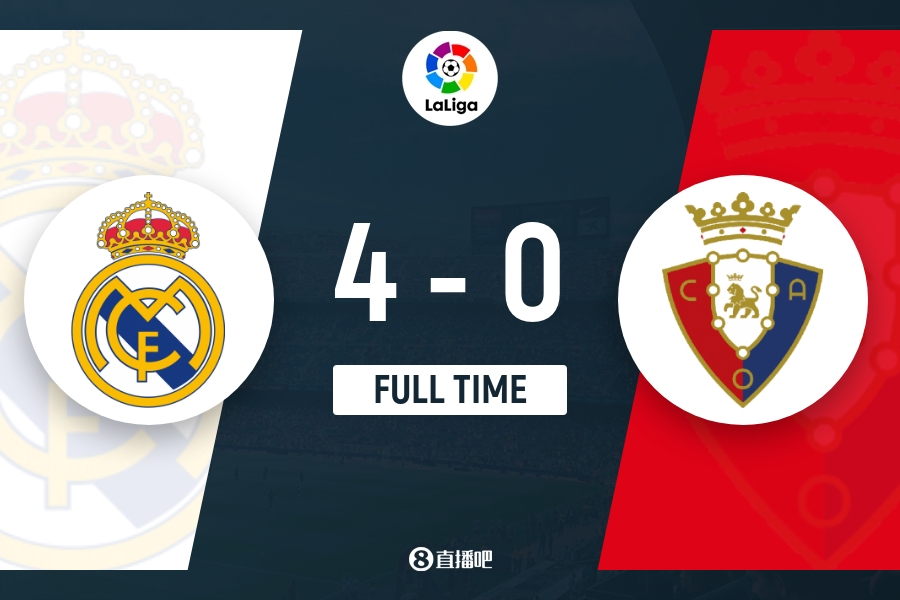 下半场补时3分钟。最终全场比赛结束,皇马4-0奥萨苏纳。
