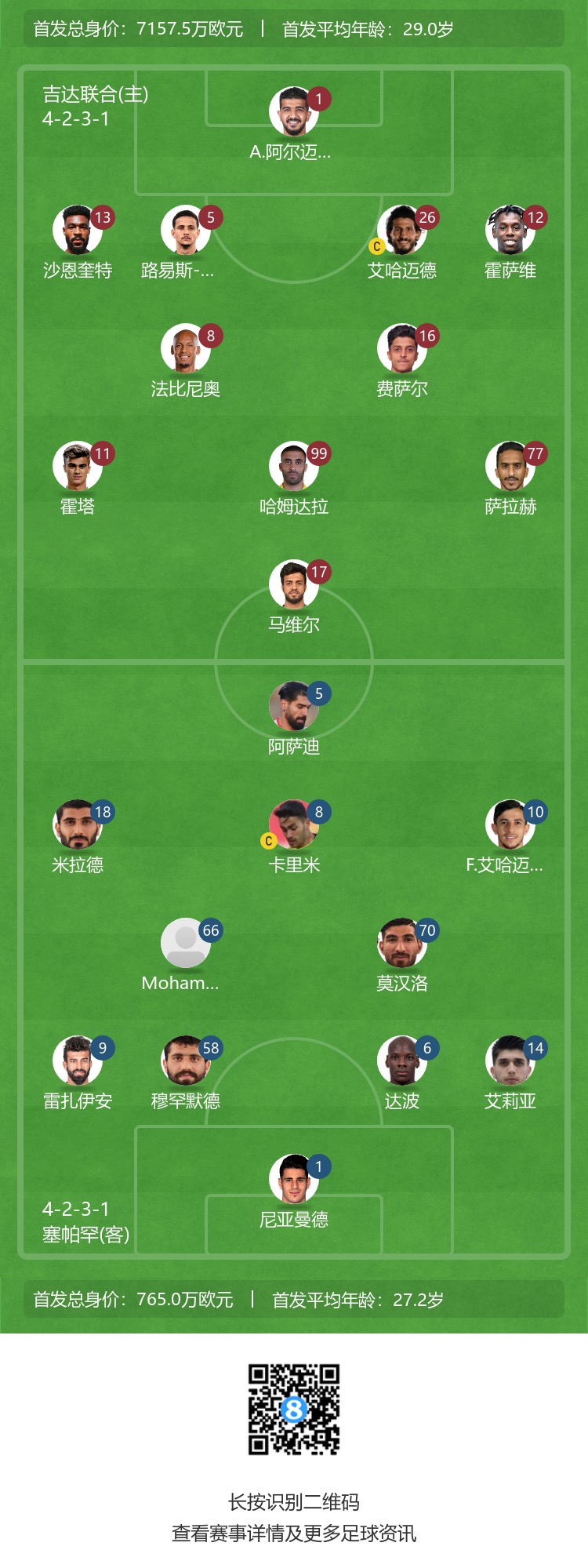 吉达联合替补:88-马瓦什、4-奥马尔-豪萨维、28-巴沙特、29-法拉赫-沙姆拉尼、24-阿布德、70-哈伦-卡马拉、52-哈吉