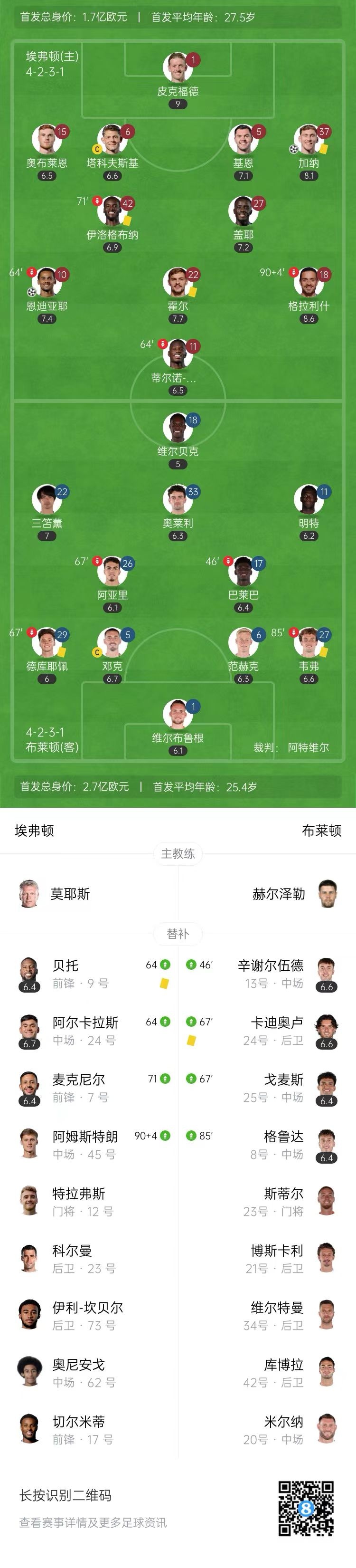新主场开门红!埃弗顿2-0布莱顿 格拉利什两送助攻 维尔贝克失点