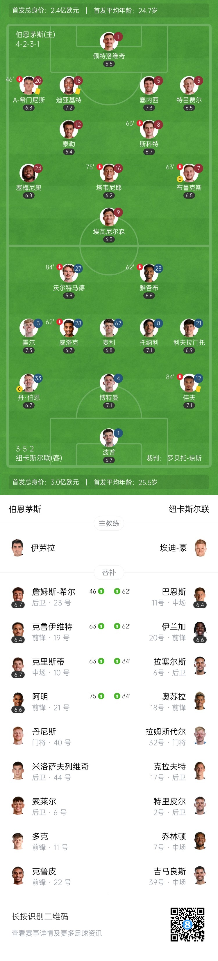 伯恩茅斯0-0闷平纽卡暂升第3 布鲁克斯进球被吹佳夫连续犯规逃红