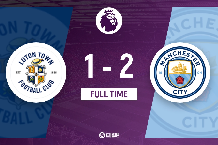 下半场伤停补时6分钟,全场比赛结束,最终曼城2-1逆转卢顿。