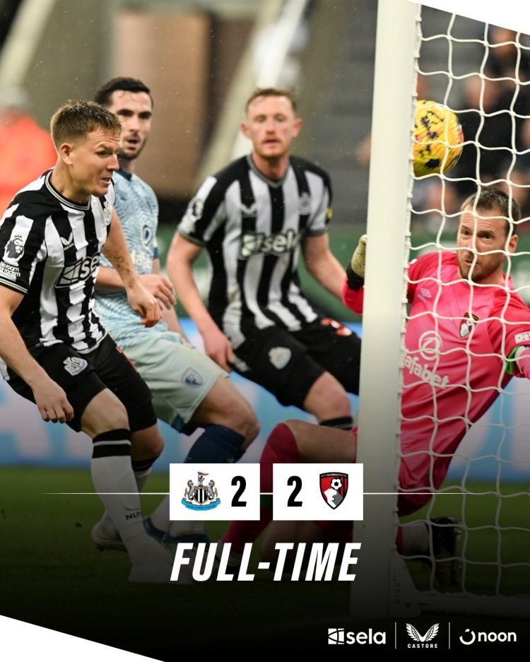 纽卡本轮2-2绝平伯恩茅斯 索兰克传射戈登点射杜布拉夫卡失误