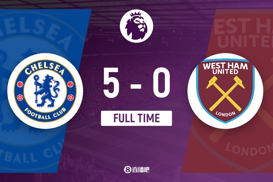 全场比赛结束,切尔西5-0西汉姆联!