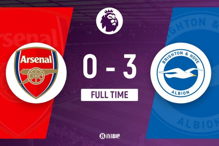 伤停补时8分钟。全场比赛结束,阿森纳0-3布莱顿。