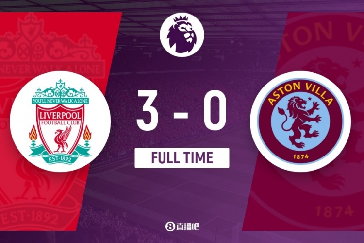伤停补时4分钟。全场比赛结束,利物浦3-0阿斯顿维拉。