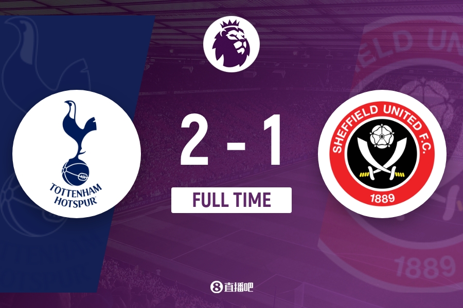 全场比赛结束,热刺2-1谢菲尔德联。