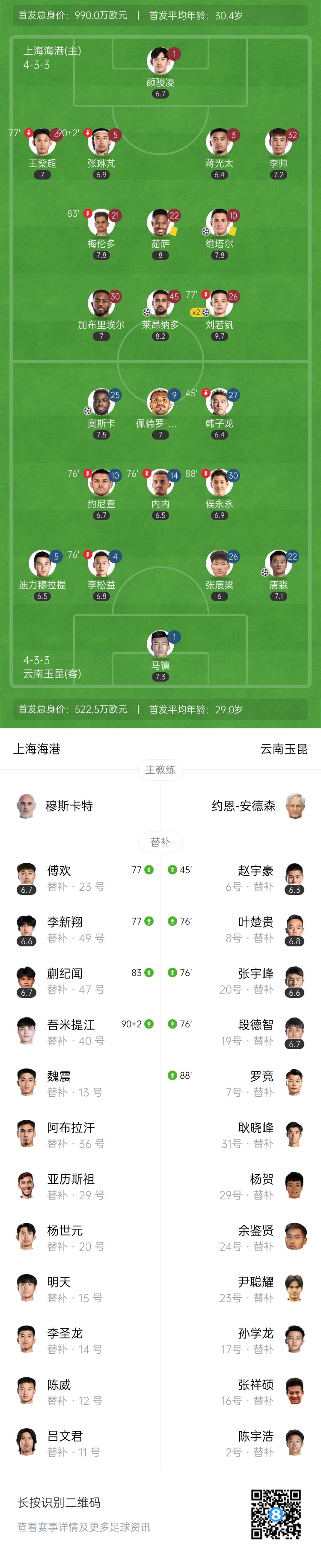 终结2轮不胜!海港4-2玉昆 刘若钒2射1传1造点 莱昂纳多传射