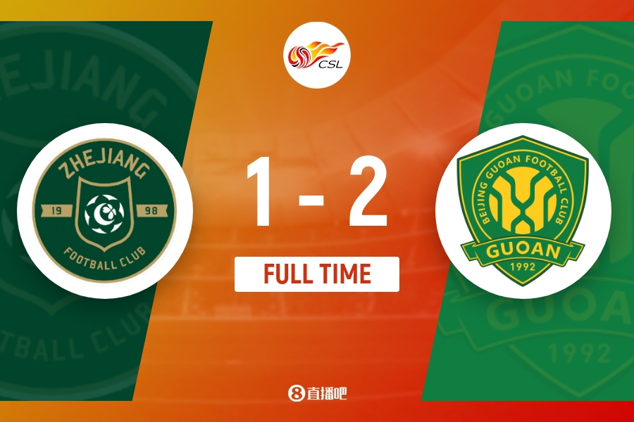 全场比赛结束,北京国安2-1浙江。